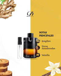 Cómo un cóctel oscuro servido en copa elegante con un toque de cuero, que arranca con un estallido frutal intenso de frambuesa, mandarina verde y bergamota. En el corazón, aparece un giro especiado de cardamomo, lavanda y salvia, mientras que el fondo de cuero refinado, vetiver y wolfwood le da un aire masculino, sofisticado y magnético. Una fragancia que combina dulzura y fuerza en perfecta armonía.